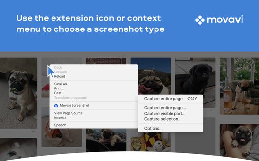 Check that the ScreenShot icon has appeared in the top right corner of your browser. Hit it and choose the size of the area you want to capture – the entire page, the full screen, or selected parts. Scrolling down the page from top to bottom causes Movavi ScreenShot to capture the page automatically. Wait for a few seconds until the capturing process is finished. Save the screenshot to your computer, choosing an appropriate format and folder. The image will be saved in JPG format by default. Now you can edit the screenshot whenever you wish or upload it to the cloud.